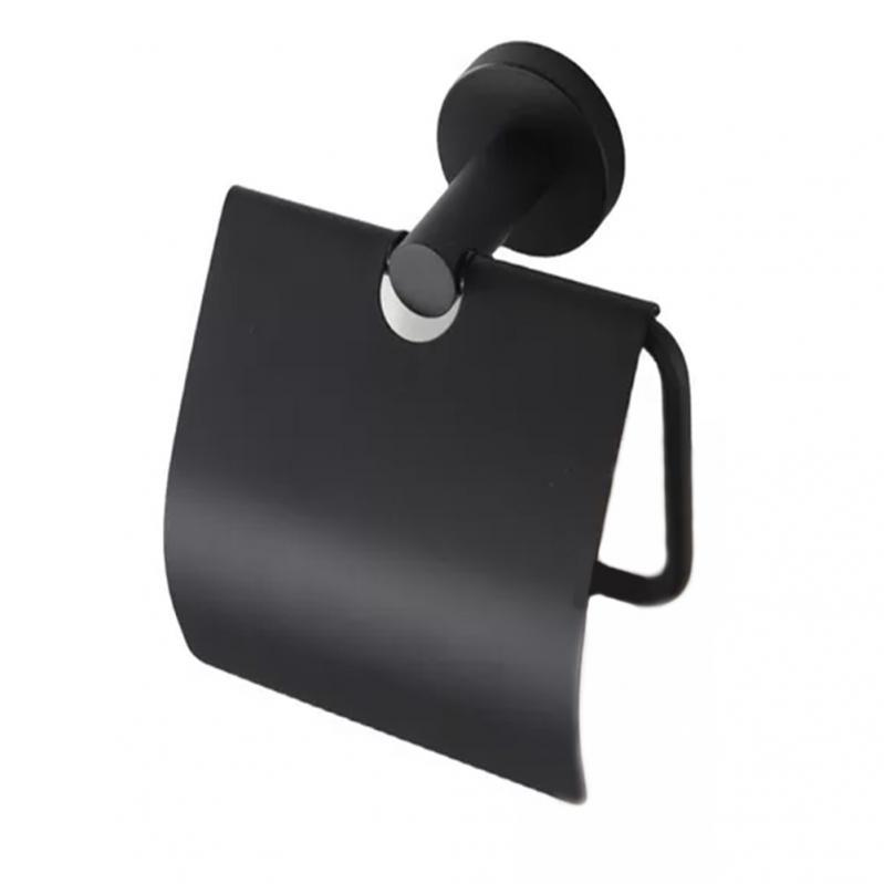 ACESSORIO WC HIDROLAR FAETTO PAPELEIRA COM TAMPA PRETO FOSCO - 10046