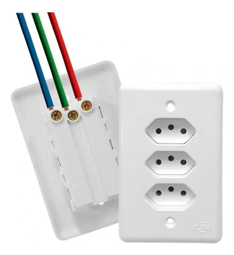 CONJUNTO ILUMI STYLUS BRANCO COM PLACA 3 TOMADAS 2P+T. 10A. - 201201 MONOBLOCO