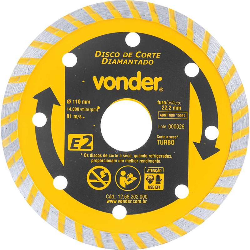Indicado para cortar mármore, granito, concreto, tijolo, telha, alvenaria e pedras. Os discos de corte a seco, quando refrigerados, proporcionam um melhor rendimento.