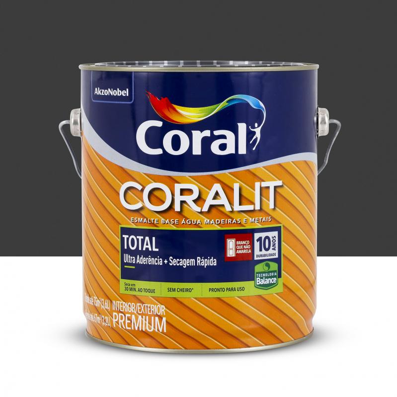 ESMALTE BASE AGUA BRILHANTE CORALIT ZERO PRETO 3,6L