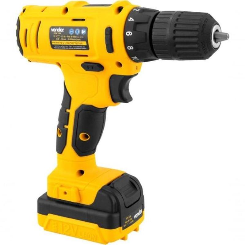 Parafusadeira à bateria 3/8'' 12v biv pfv 120 vonder marca: vonder conteúdo da embalagem: 1 parafusadeira/furadeira. Acompanha: 1 maleta, 1 bateria de 12 v, 1 carregador bivolt automático, 6 brocas de aço rápido (1,5 mm, 2,5 mm, 3 mm, 4 mm, 5 mm e 6 mm), 6 bits (2 fendas (5 mm e 6 mm), 2 phillips (ph1 e ph2) e 2 pozidrive (pz1 e pz2) e 1 soquete magnético com encaixe de 1/4". Destaques e diferenciais:possui regulagem para 18 posições de torque e 1 posição para perfuração, led para melhor visibilidade do local de trabalho e cabo com revestimento emborrachado, proporcionando maior conforto ao operador. Conta com bateria de íons de lítio, que confere alta eficiência de operação, indicador de carga da bateria, além de fonte bivolt automática com tensão de entrada de 100 v~ - 240 v~. Dicas de uso:indicada para soltar e apertar parafusos de até 6 mm de diâmetro e fazer furos em madeiras ou metais. Tempo de carregamento da bateria: 3 a 5 horas. Detalhes técnicos:bateria: 12 vtensão do carregador de bateria: 110 v~ - 240 v~ - bivolt automáticotipo de mandril: aperto rápidocapacidade do mandril: 3/8" - 10,0 mmsistema de reversão: simrotação da furadeira/parafusadeira: 0 - 650/mincapacidade máxima de perfuração em madeira: 16,0 mmcapacidade máxima de perfuração em aço: 10,0 mm