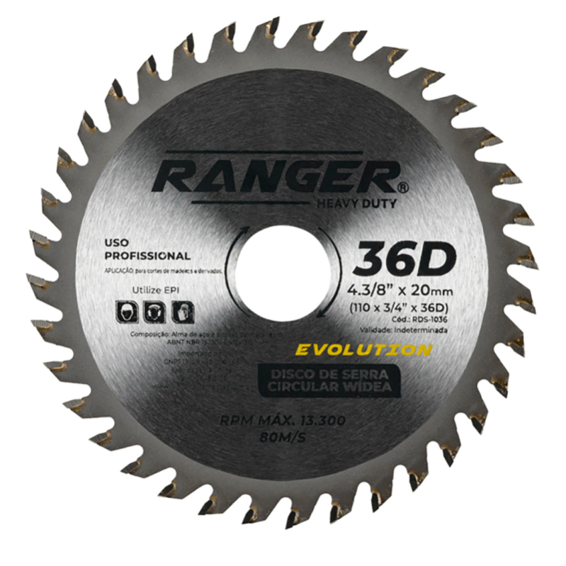 DISCO DE CORTE SERRA CIRCULAR WIDEA 4.3/8" X 20 MM 36 DENTES RANGER
