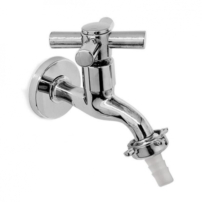 A Torneira de Jardim 1/2" x 3/4" C-53 é indicada para uso em áreas externas como jardins, garagens e quintais, oferecendo praticidade no manuseio da água. Seu corpo metálico com acabamento cromado garante boa resistência ao uso contínuo e às variações climáticas. Com bico para mangueira, ela facilita atividades do dia a dia como regar plantas ou lavar o carro.